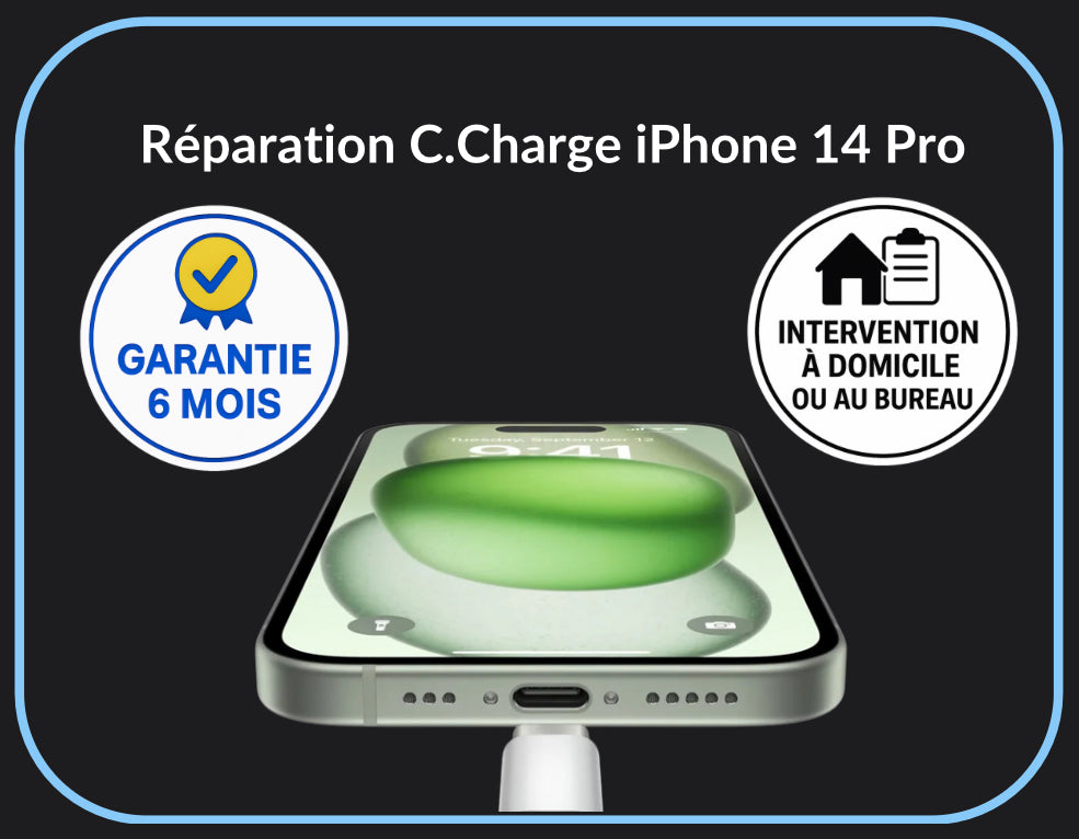 Remplacement du connecteur de charge : idéal si votre iPhone ne se charge plus, ne reconnaît plus le câble ou si le micro ne fonctionne plus.